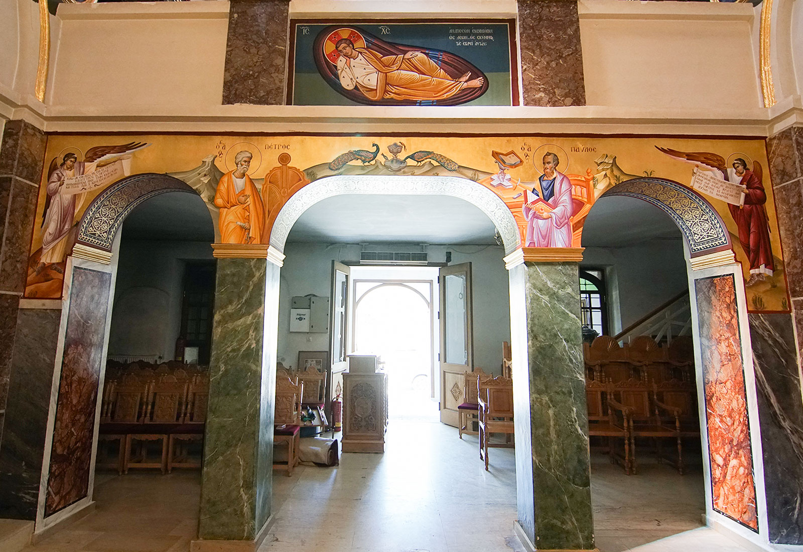 Inspired by its new look of an impressive arched basilica, we created the Annunciation of the Virgin Mary on the main front, above the Holy Step, with references to the most glorious moments of the Orthodox aesthetic tradition, developing further our new proposal.