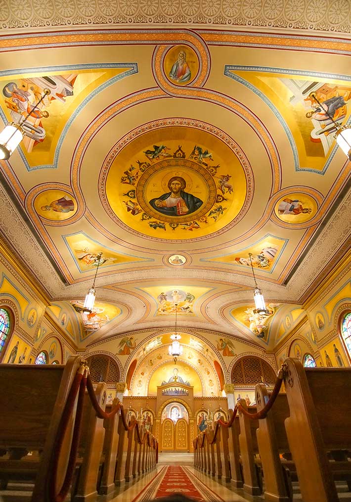 We tried to unify the space with a relative degree of overall decorative mood, but at the same time to give a note of traditional sanctification working in the space both with the traditional overlapping belts and busts of Saints, and with the effort to come up with some compositions that will complete a typical program of an orthodox temple.